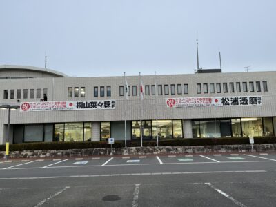 大野町の役場の写真です。先日の松浦選手に続いて桐山選手もご活躍が期待されています。