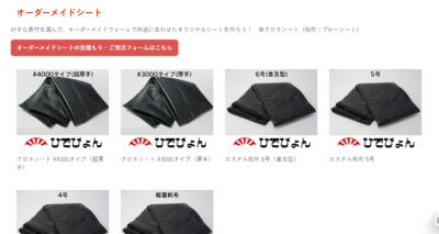 ひでぴょんのリピートのお客様から「オーダーメイドのシート注文はどこでするの?」という問い合わせがありました。