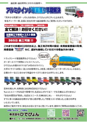 「アルミウイング車の雨漏り早期解決!」ウイングバリアキングがお手伝いをいたします。興味がありましたらお問い合わせだけでもかまいません。まずは「チラシを見たよ」とご連絡をお願いいたします。うらちゃんより。