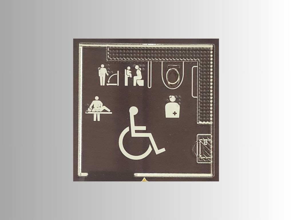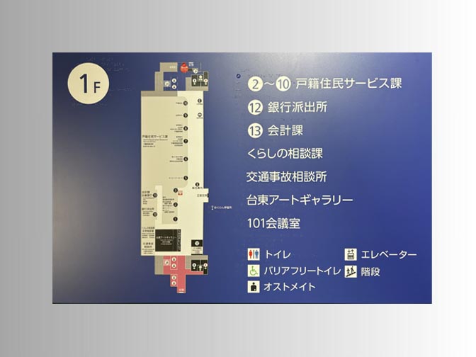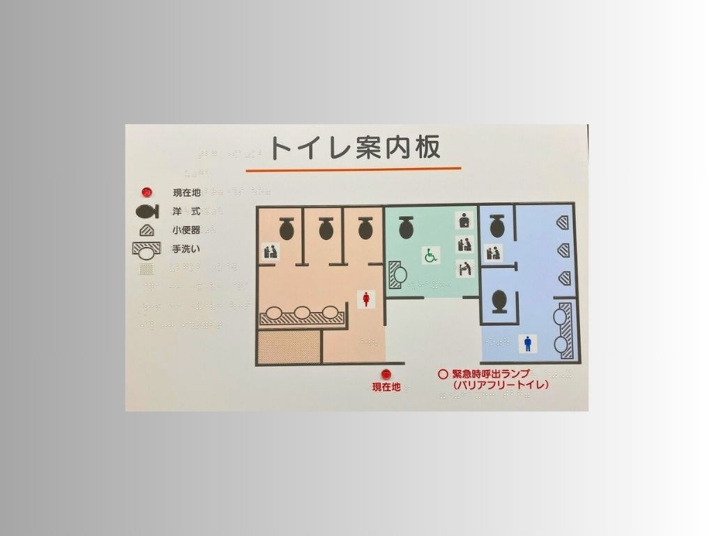 大型ショッピングモールや商業ビル内では、トイレ案内、フロア案内、エスカレーター・エレベーター前など、多くの方が触れるポイントがあります。点字を用いることで、視覚に頼らない方も自立して施設内を移動可能に。多様な素材(アクリル、ステンレス、アクリル板など)に対応可能で、景観と調和するデザインをご提案できます。