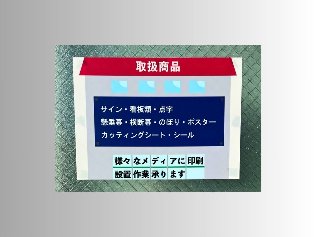 屋外看板は、耐候性・耐UV性を重視した素材選びと印刷技術が鍵です。当社では、さまざまな設置環境にも耐える丈夫なインクと基材を使用し、視認性と耐久性を両立しています。